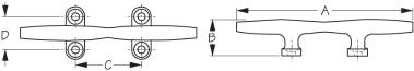 Cornamusas de base abierta Sea-Dog en nailon negro y acero inoxidable 316 para amarre de líneas marinas