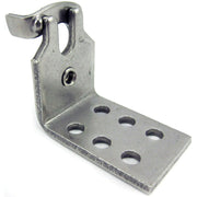 Construcción de acero inoxidable. Dimensiones: 1-1/2" de alto, orificios de montaje de 13/64" de centro a centro de 3/8" de adelante hacia atrás y de centro a centro de 3/4" de lado a lado