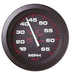 Black dial, red graduations, white numerals, vivid white pointer staff, Perimeter and thru-dial lighting, Scratch resistant curved glass lens with black near-flush bezels. Size: 3", Dial Range: 10-65MPH