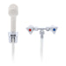 The Ambassador Marine Trinidad 2 Handle External Shower Mixer in Chrome and Warm White offers a compact and durable solution for marine and RV shower applications. This unit features a small, heavy-duty sprayer with full shut-off and flow control capabilities via an ergonomic trigger. The sprayer connects to a 72-inch white rubber hose and mounts using a two-hole, 4-inch center-to-center configuration. Designed for easy bulkhead installation on thin fiberglass walls, this non-pressure balanced system includes compression valves and a solid brass body with metal handles for lasting performance. Compatible with standard 1/2" NPS-M plumbing fittings.