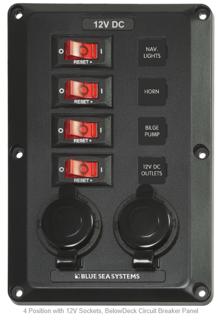 Blue Sea 4351 4 Position with 12V Sockets, BelowDeck Circuit Breaker Panel